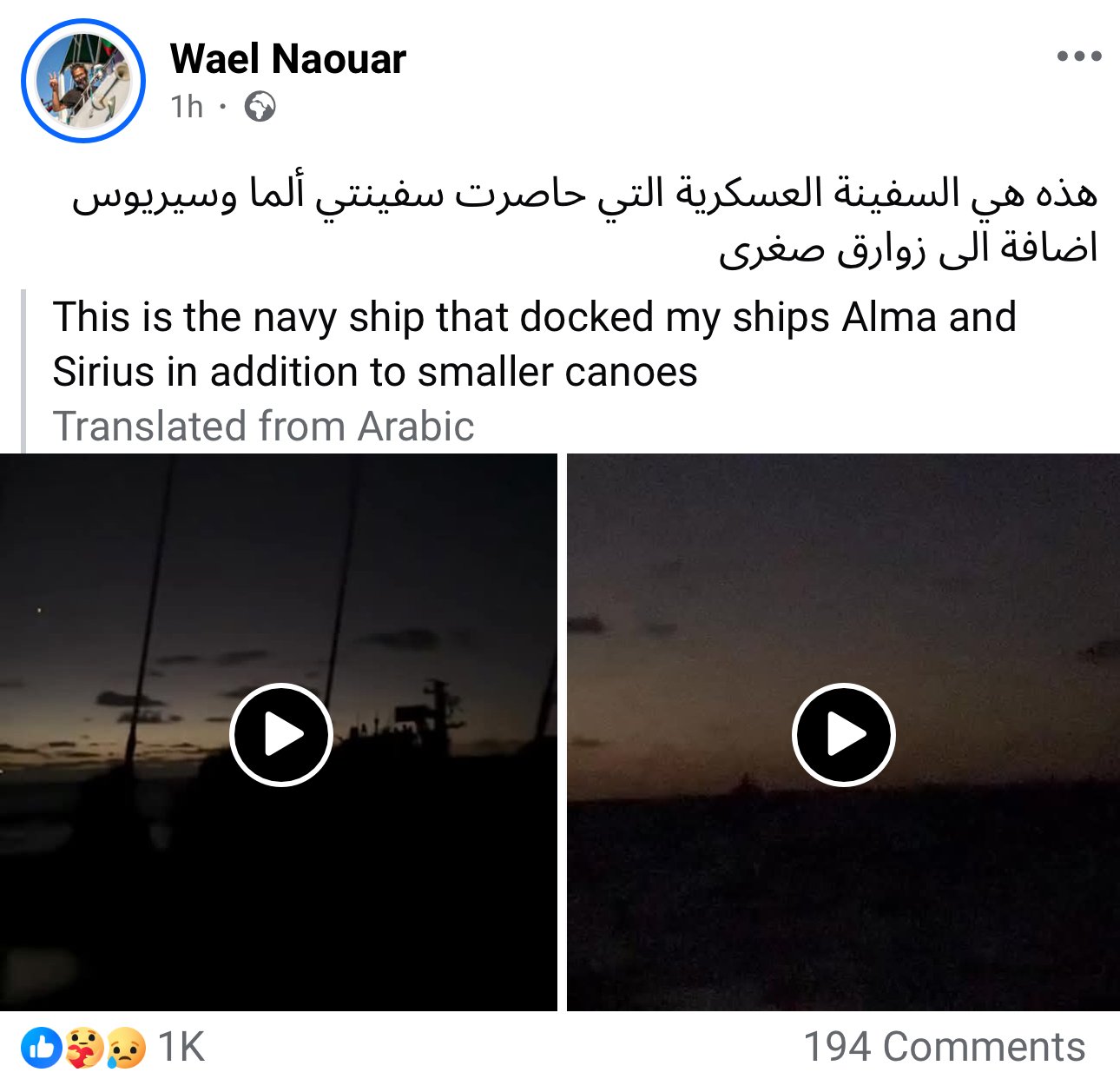 وفقاً لما ذكره نوار، تم رصد سفينتين حربيتين تتواجدان في محيط سفينة “الأمل”، وهي السفينة الرئيسية في القافلة. وقال: “حالياً، هناك سفينتان تحيطان بسفينة ‘الأمل’، وتقتربان بشكل تدريجي”، واصفاً المشهد بأنه استعداد محتمل لعملية اعتراض.