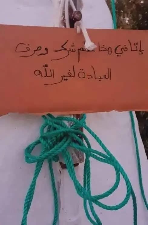 لم يتوقف الأمر عند حرق العلم، بل تم العثور أيضًا على لافتة ورقية معلقة في مكانه، كُتب عليها بخط اليد عبارة ذات طابع متطرف: “إن في هذا العلم شرك وصرف العبادة لغير الله”، مما يكشف عن الخلفية الفكرية الخطيرة التي تقف وراء هذا الفعل الإجرامي.